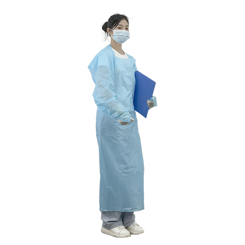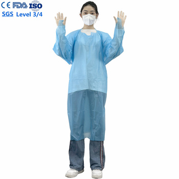 FDA одобрено 45 г одноразовый синий пластиковый водонепроницаемый халат CPE медицинский фартук EN1149-1 для хирургии больничной формы
