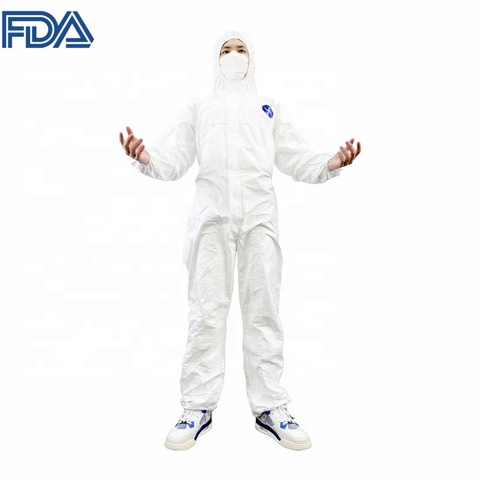 Одноразовый 400 комбинезон Tyvek, дышащий водонепроницаемый защитный комбинезон PPE 65gsm с капюшоном для распыления асбеста AAMI level 4